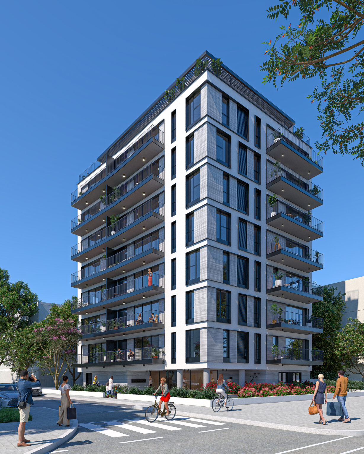 בפרויקט 25 יחידות דיור (3 דירות בקומה בלבד) ומתנשא לגובה של 8.5 קומות.